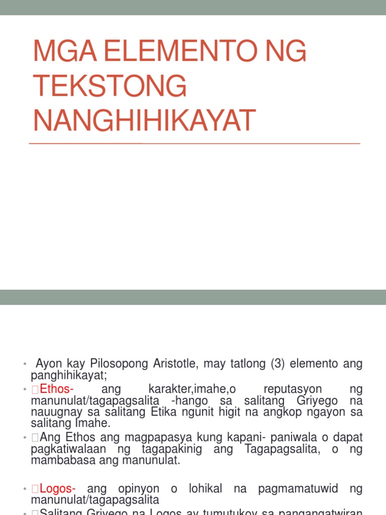 Mga Elemento Ng Tekstong Nanghihikayat Pdf