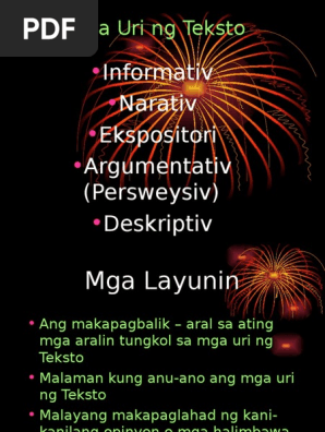 Ang layunin ng tekstong. 2May humor o Katatawanan. Anoano pa ang dapat mong isaalang-alang sa pagbuopagsulat ng tekstong impormatibo at deskriptibo na patungkol sa nasabing paksa.