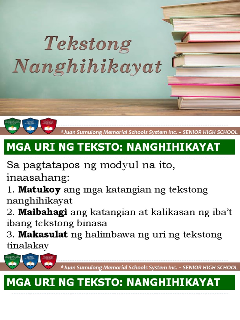Tekstong nangungumbinse o nanghihikayat. Dalawang halimbawa ng tekstong nanghihikayat.
