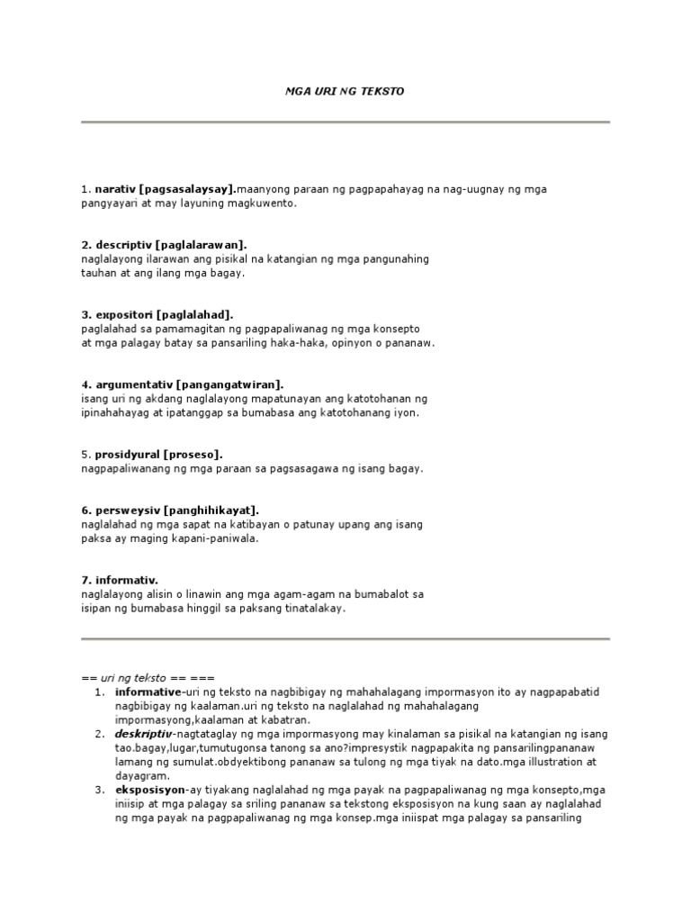 Mga Uri Ng Tekstong Impormatibo Pdf