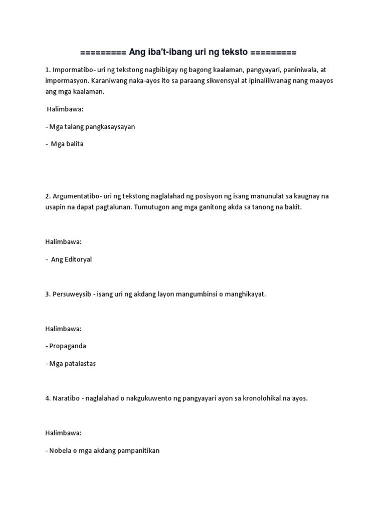 Ang Ibat Ibang Uri Ng Teksto Pdf