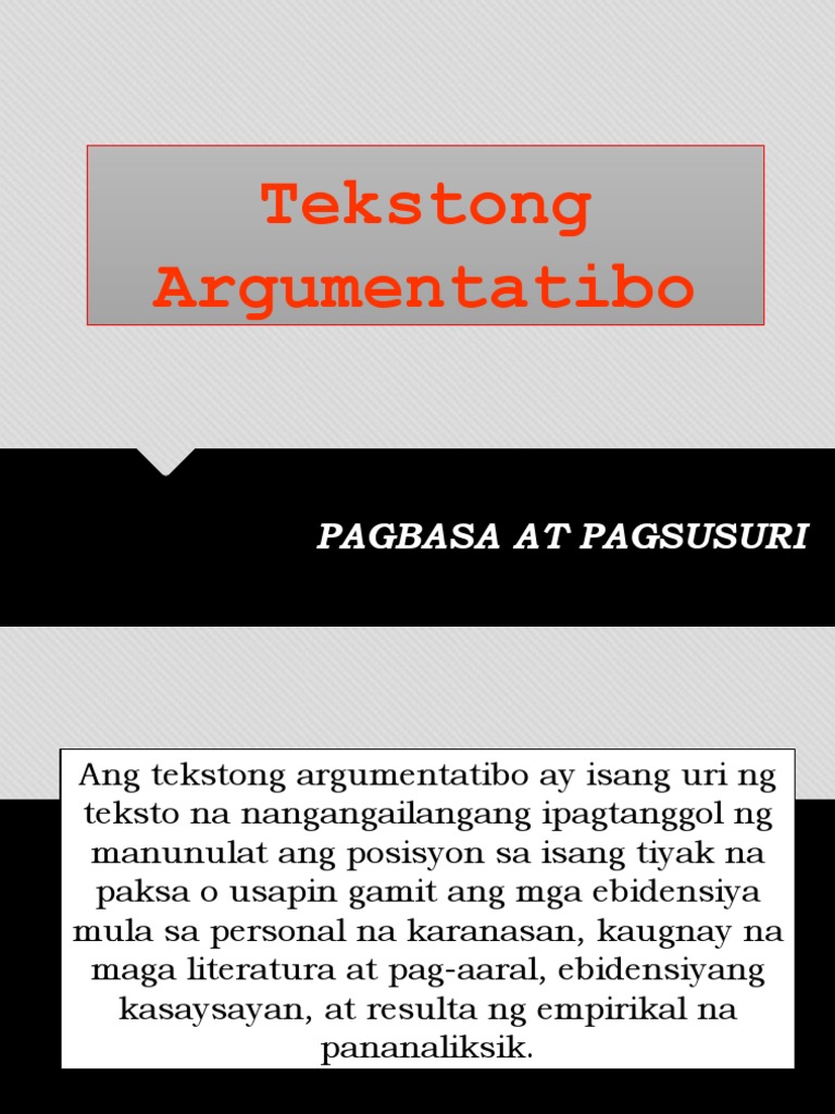 Ano ang Tekstong Argumentatibo. Bakit kailangang maunawaan at matutuhang sumulat ng tekstong argumentibo.